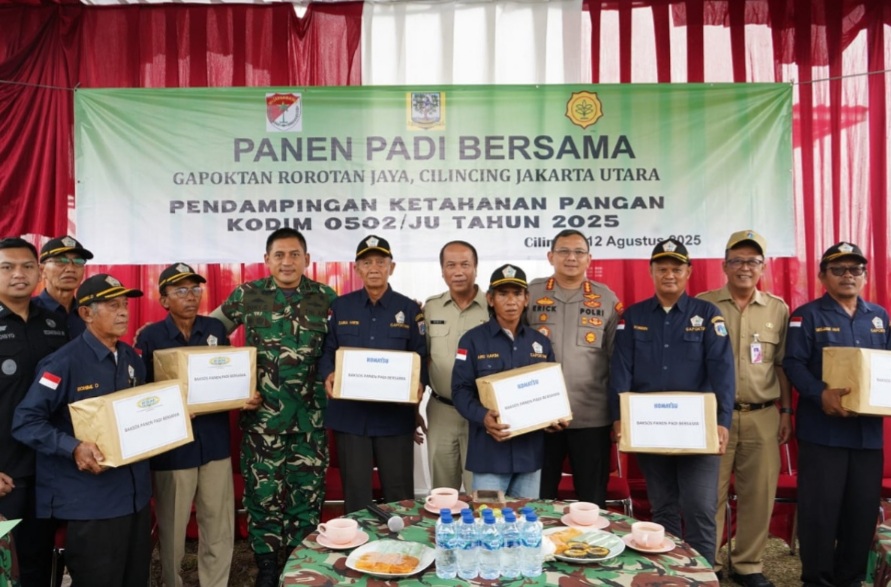 CHAKRANEWS.MY.ID, — Jakarta Utara –, Hamparan padi menguning di persawahan Kelurahan Rorotan, Kecamatan Cilincing, menjadi saksi kebersamaan TNI, Polri, Forkopimko Jakarta Utara, dan ratusan warga dalam panen raya, Selasa (12/8/2025) pagi. Kegiatan ini menjadi langkah nyata untuk menjaga ketersediaan pangan dan mendorong kesejahteraan petani di wilayah tersebut.
