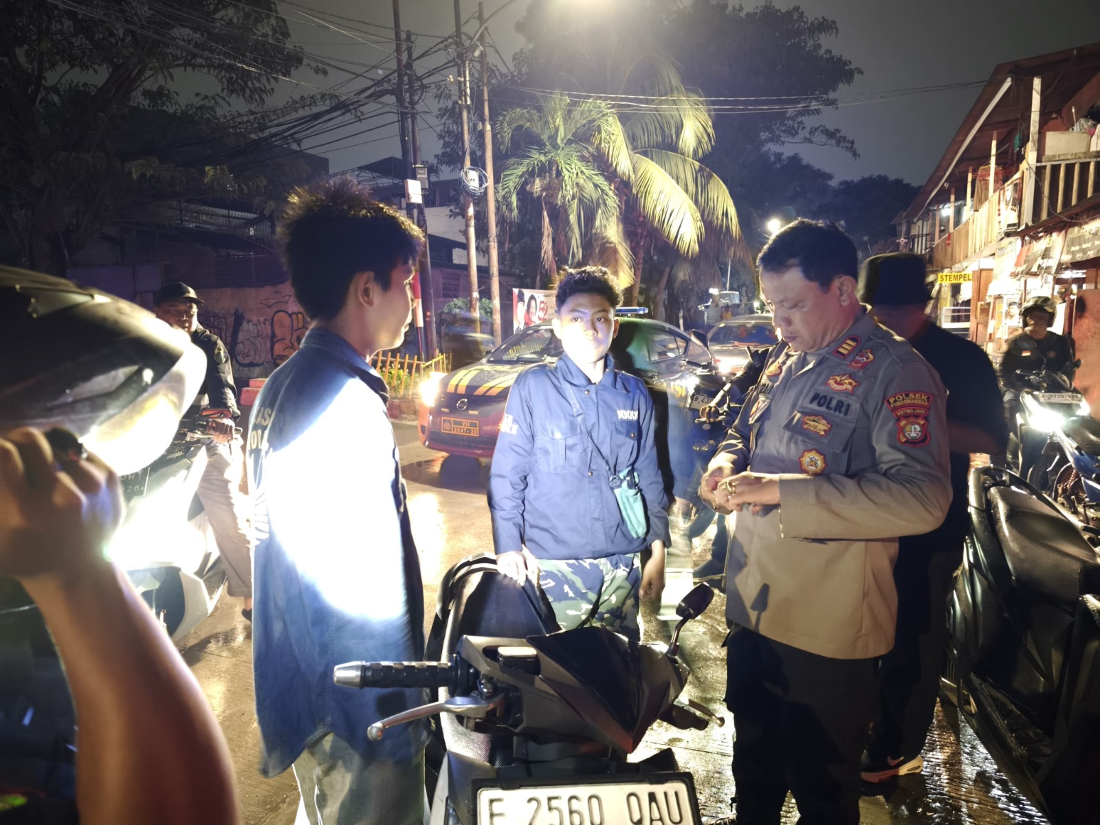 Di lokasi lain, tepatnya di Jl. Pademangan V, tim menghentikan tiga remaja yang berboncengan menggunakan motor. Mereka terlihat mencurigakan, dan dikhawatirkan akan melakukan tawuran. Setelah diperiksa, tidak ditemukan barang berbahaya, namun mereka diberikan nasihat.