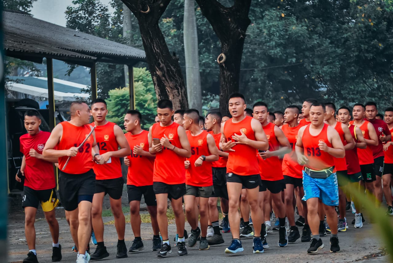 “Kegiatan diawali dengan Apel pengecekan seluruh Personil dan dilanjutkan senam peregangan yang bertujuan untuk melemaskan urat-urat yang kaku sebelum melaksanakan Pembinaan Fisik Lari Bersama”.