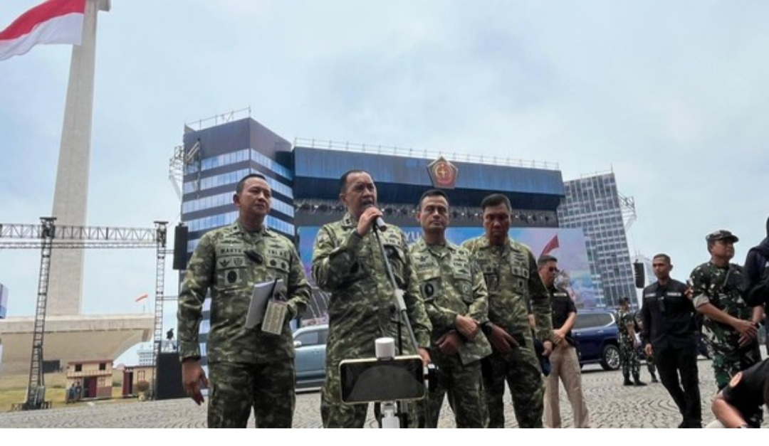 CHAKRANEWS.MY.ID.JAKARTA 3/10/25,–Bendera Merah Putih berukuran besar robek saat gladi atau latihan peringatan HUT ke-80 TNI di Tugu Monumen Nasional (Monas), Jakarta Pusat, kemarin. Kapuspen TNI Mayjen TNI (Mar) Freddy Ardianzah memberi penjelasan soal peristiwa itu.