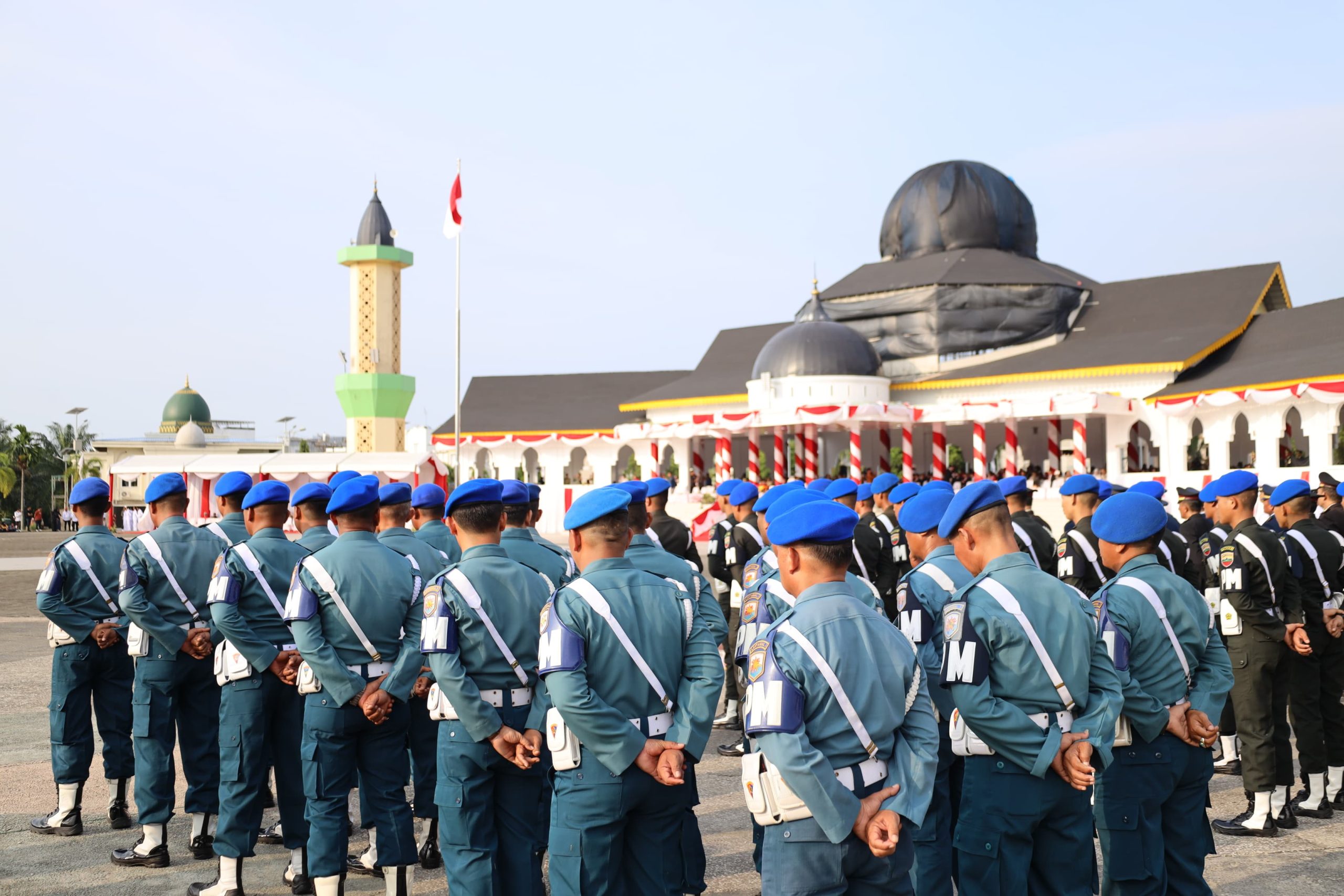 CHAKRANEWS. MY. ID-TNI AL, BELAWAN,- Komandan Pangkalan Utama TNI Angkatan Laut I (Danlantamal I) Brigjen TNI (Mar) Jasiman Purba, S.E., CHRMP., diwakili Wadan Lantamal I Kolonel Laut (P) Siswo Widodo, S.T., beserta Forkopimda Provinsi Sumatera Utara menghadiri Upacara Penurunan Bendera Merah Putih dalam rangka Hari Ulang Tahun (HUT) Ke-79 Kemerdekaan Republik Indonesia Tahun 2024 dipimpin oleh Pj. Gubernur Sumatera Utara Agus Fatoni, bertempat di Lapangan Astaka, Jalan Willem Iskandar, Deli Serdang Sumatera Utara, Sabtu (17/8/2024).