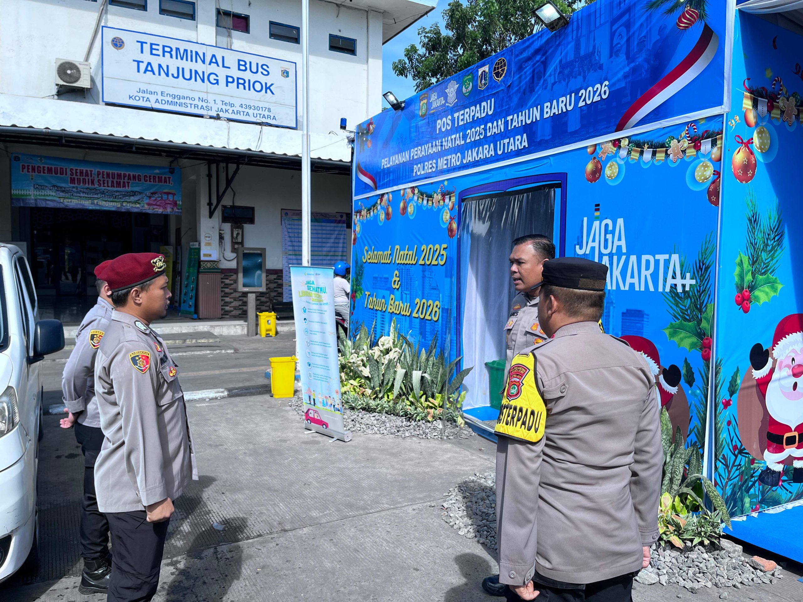 CHAKRANEWS.MY.ID.JAKARTA 28/12/25,– Di penghujung tahun 2025, Wakil Kepala Kepolisian Resor Metropolitan Jakarta Utara (Wakapolres Jakut), AKBP James H. Hutajulu.S.I.K., S.H., M.H., M.I.K., melakukan kunjungan kerja mendadak dan pengecekan langsung di Pos Terpadu Terminal Tanjung Priok, pagi ini, Minggu (28/12/2025).Kunjungan yang dimulai tepat pukul 09.00 WIB ini dihadiri oleh jajaran pimpinan utama Polres Metro Jakarta Utara, termasuk Kasi Propam, Wakasat Reskrim, Kasiwas, Wakasat Samapta, Wakapolsek Tanjung Priok, serta para pejabat fungsional, menunjukkan keseriusan dalam menjaga Kamtibmas di di wilayah Jakarta Utara.