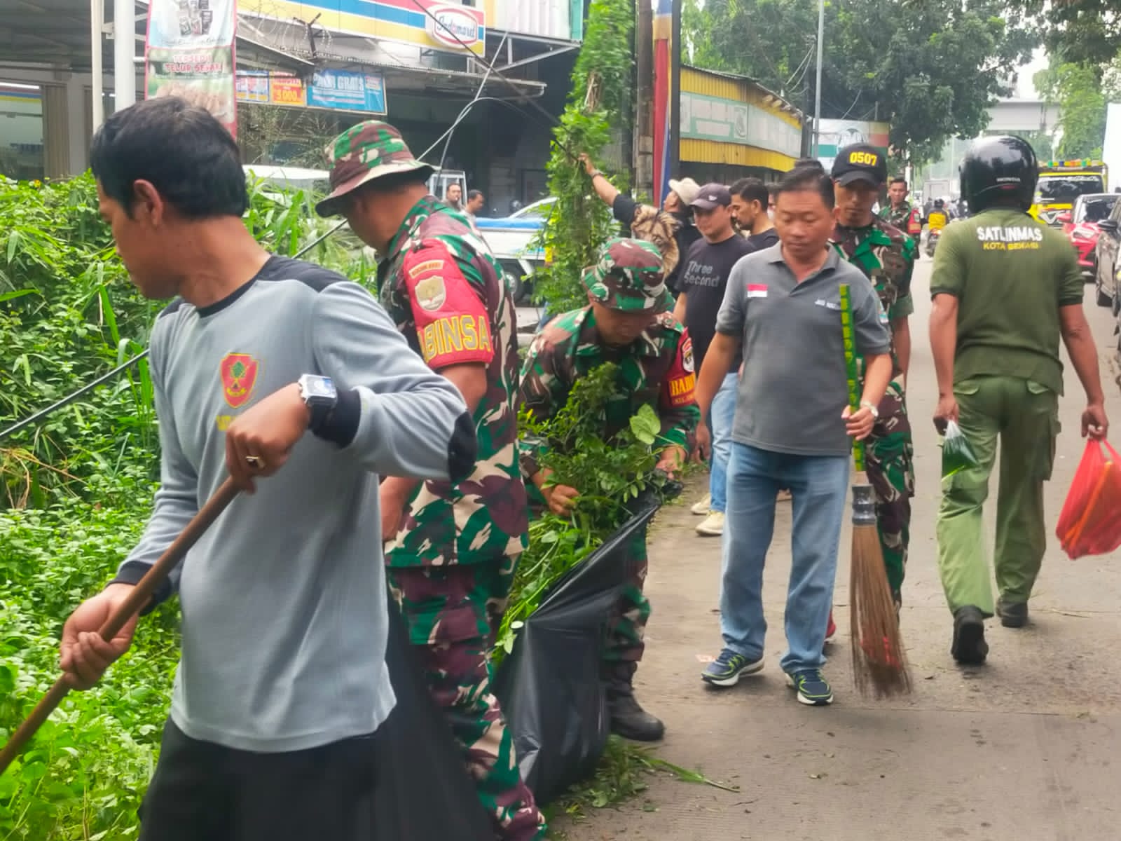 Wujudkan Lingkungan Bersih Dan Nyaman, Babinsa Koramil 02/Pondok Gede Bersama Tiga Pilar Gelar Karya Bakti